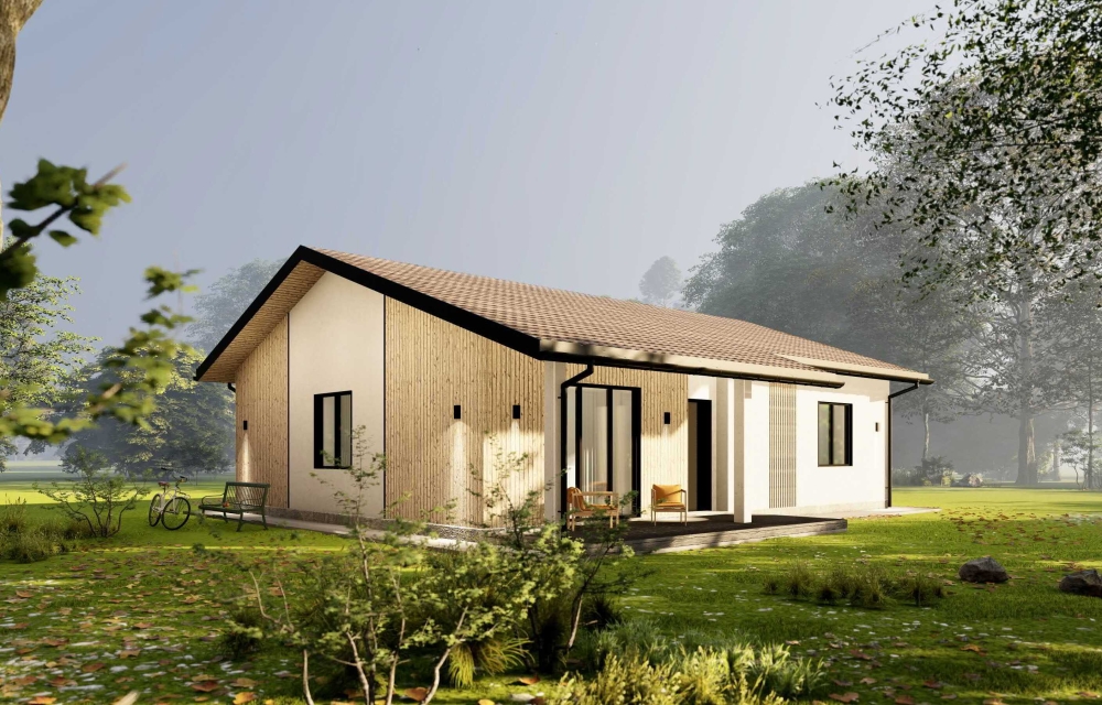 Пожелания заказчика: компактный дом в рамках ограниченного бюджета, комфортное и функциональное пространство для семьи.